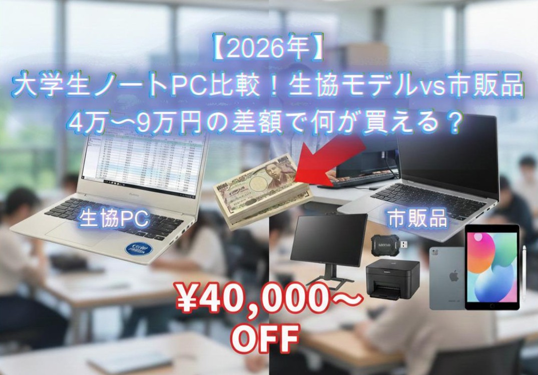 【2026年】大学生ノートPC比較!生協モデルvs市販品、4万〜9万円の差額で何が買える?