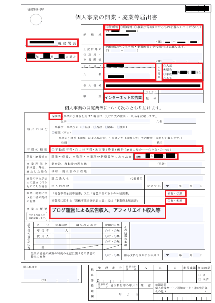 - あなたが「正式に個人事業主」として税務署に登録されます。