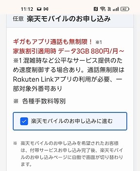 こちらも既に申し込んでいるか別のキャリアでスマホから申し込んでいるので最初から入っている申込チェックは外してください。楽天モバイル自体は悪くないと思いますのでこの際申込したい人はチェックしてもいいでしょうが・・このやり方は嫌い
