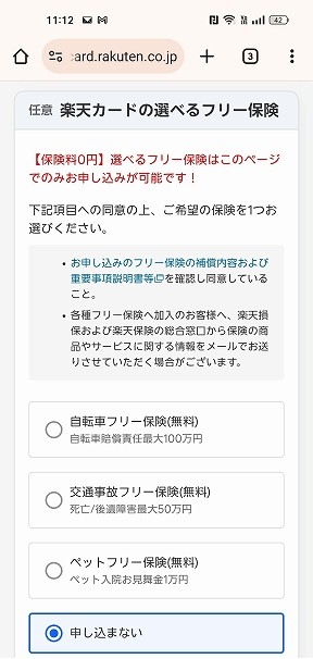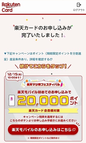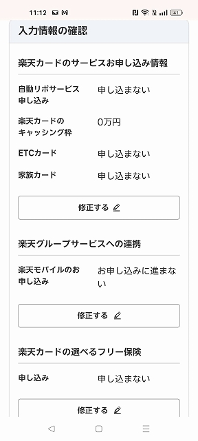 最終の入力情報をよく確認してください。ETCカード、自動リボ、キャッシング、家族カード、フリー保険、楽天モバイル、なんなら電子決済のエディも今まで使ってこなかったなら必要ないです。無駄な罠にひっかからないように十分確認して必要なものだけ申し込んでください。