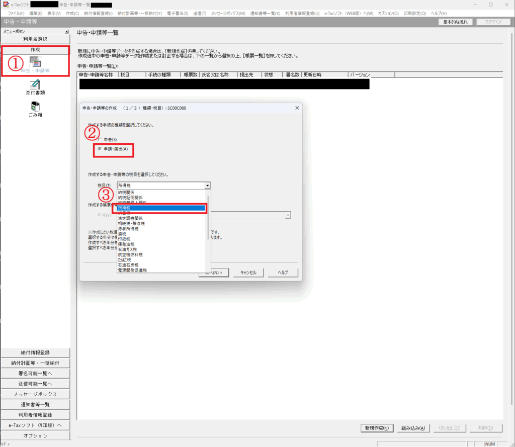 e-tax web版にはなくてこっちにはある・・もう乱雑でめちゃくちゃなんです。