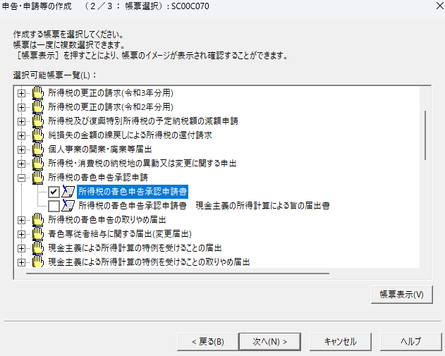 「はずです・・」と書いたのは、ズべは選んだつもりでしたが表示されず、最終的に申告のすべてにチェックを入れることでようやく表示されるようになりました。