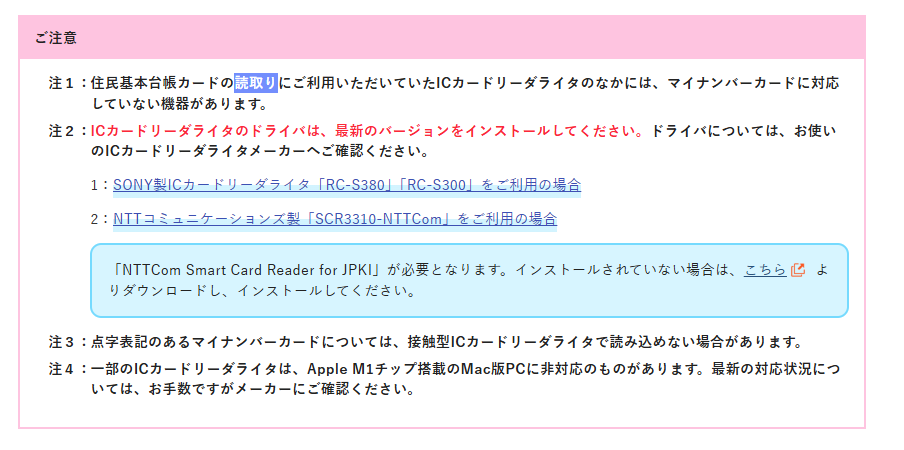 この2つで本当にICカードリーダが認識されるとカードを入れたら常に点滅したような状態になります。私は本当の最新のドライバを探して認識させるまでに数時間かかりました。(カードの向きにも注意してください)
