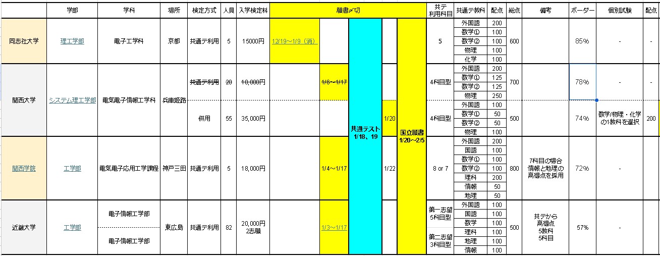 この後、更に調べて大学の立地、学科、各大学の共通テスト配点と個別試験配点など調べるほど毎年変わっていく大学受験の複雑さに気づかされます