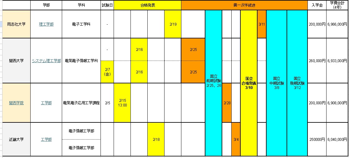 まず、中期の大阪公立はかなり難しいとの事。兵庫県立大は工学部の中期募集はなし、山口東京理科大は電子工学部なしで中期に現地に試験にいくことの精神的大変さから中期自体却下の可能性大。