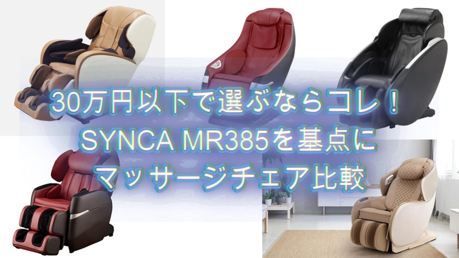 MR385 の強み:コンパクト(幅70cm)、GRACEメカの広範囲施療、USB充電やBluetoothスピーカーなど現代的な装備、価格レンジ(15〜20万円)でバランスが良い。