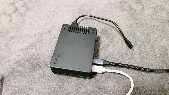 外出先で近くにあったUSBーCで給電してみましたが、起動はできるものの電源が足りずBluetoothマウスが引っかかりました。