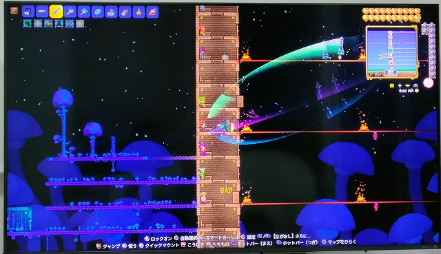 二階の部屋にはゲーミングPCがあり、そこでもテラリアはできるのですがリビングでのんびり一人の時間にできるテラリアはまた最高。