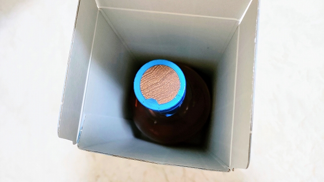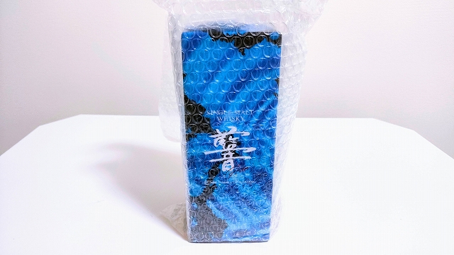 なかは三方をぐるりと断衝材がはいっていてなかにウイスキーが!