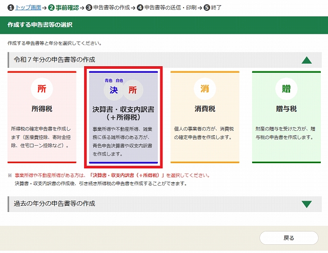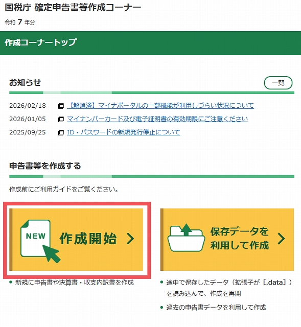 必ず所得税の申告書作成はこちらを選択してください