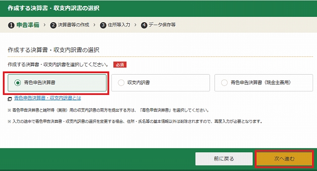 青色申告は「決算書」と「申告書」の2つがセットで初めて有効になります。ここで「しない」で終了してしまうと、ただの収支計算だけで終わり、税金の申告が完了しません。