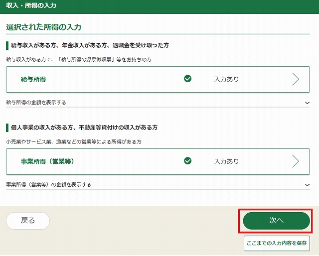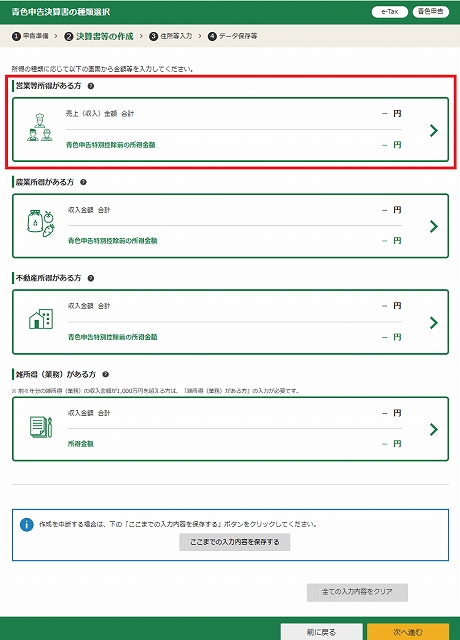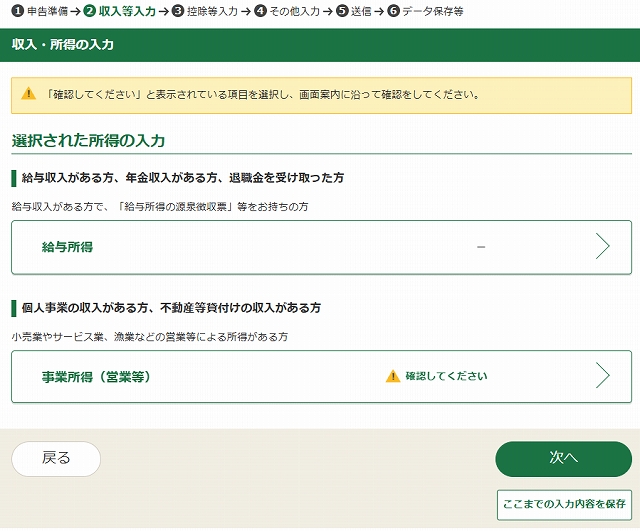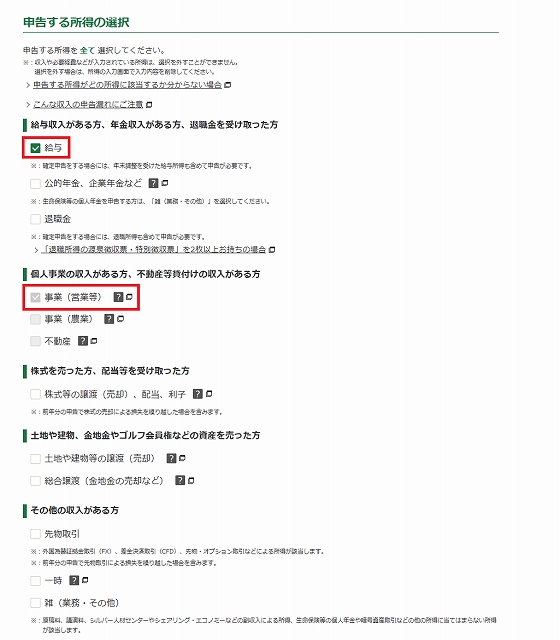 ここでブログ収入などの場合は営業等所得のある方を選ぶ