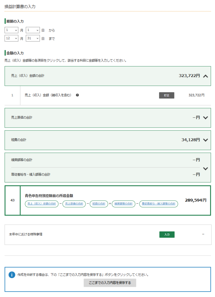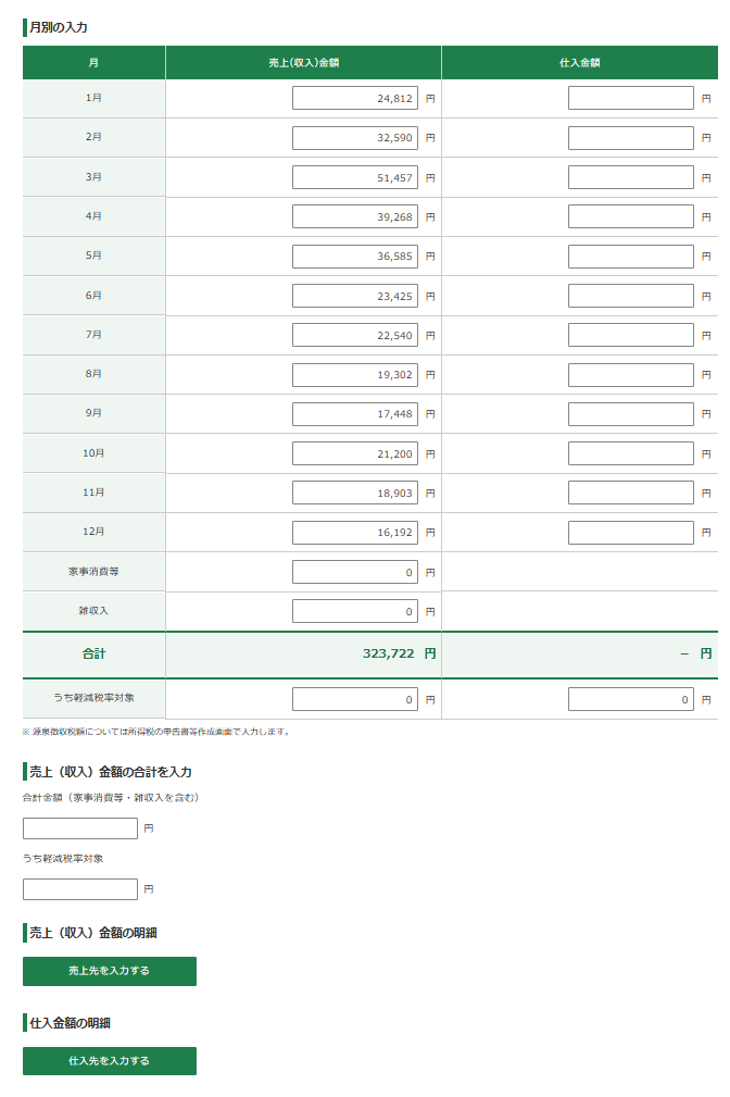 「青色申告決算書(収支の結果)」の入力