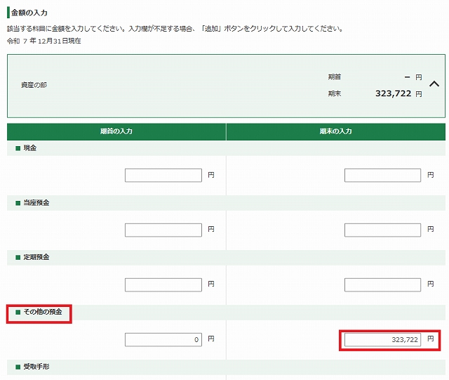 ■資産の部への入力