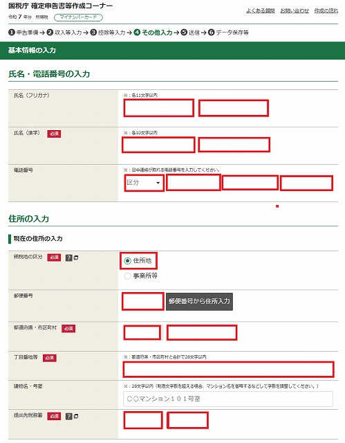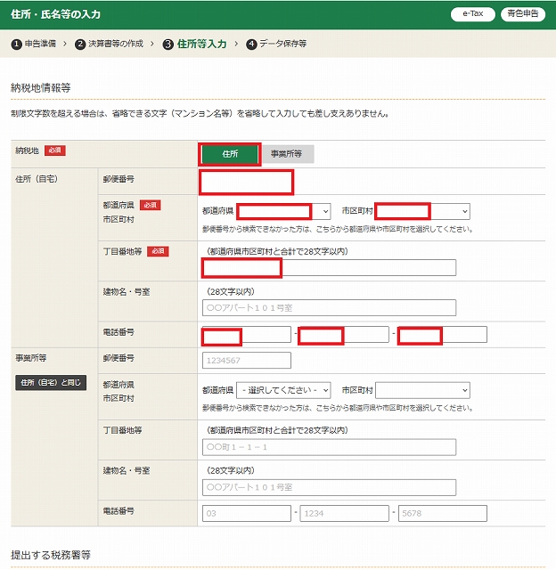 納税地情報(住所・氏名等の入力)