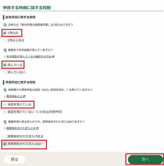 いずれにも該当しない: 白色申告などの場合です。