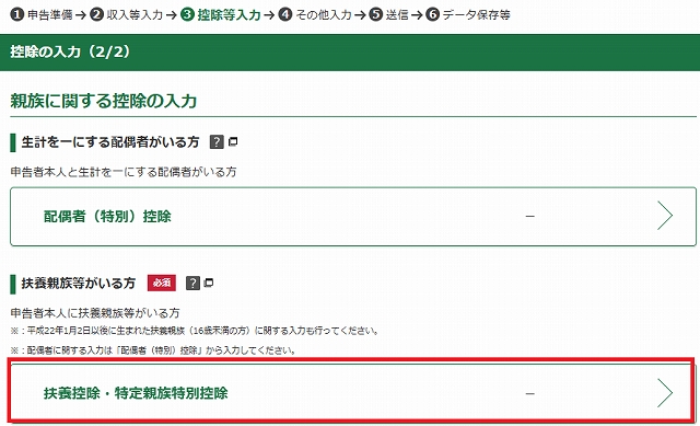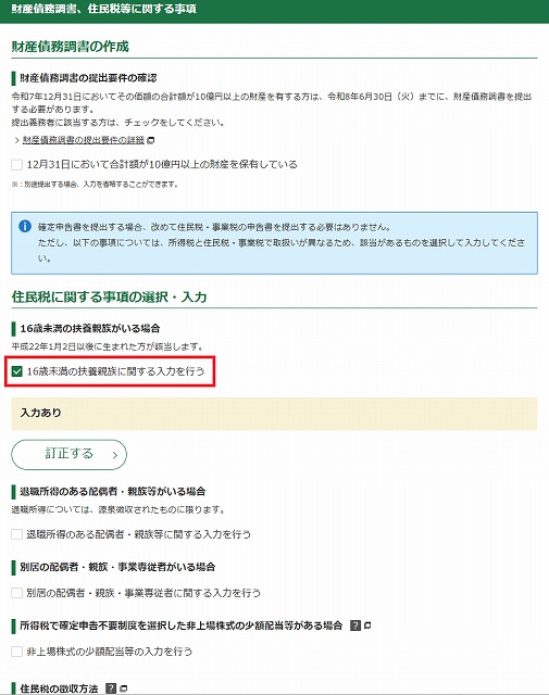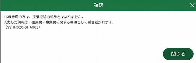 ✅16歳未満の不要親族に関する入力を行うにチェック