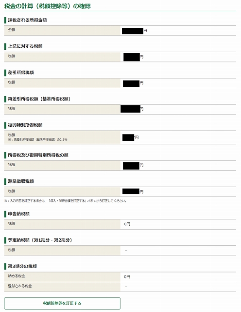 65万円以下しか副業の収入がないので納付する金額が0円と表示されました。