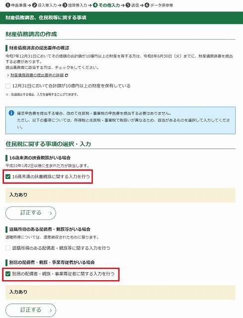 この前に、財産債務調書の作成がありますが12月31日において合計額が10憶以上の財産を保有している(もってたら自分でこんなの書かない)にチェックせず次の住民税を入力します。