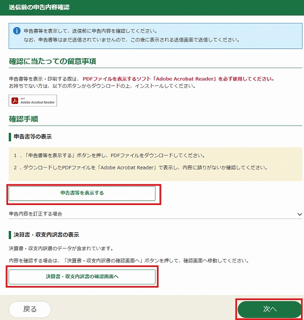 送信前の申告内容確認~送信