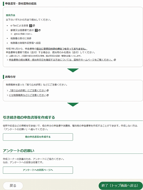 最後のアンケートは、この長すぎる確定申告に文句でも書いてやろうと思ったのですが自由記載の欄がなく都合のいい選択様式になっていたので書くのをやめました。