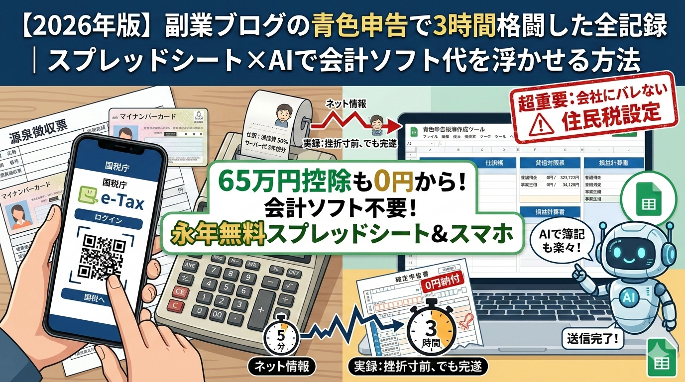 スプレッドシートなのでどこからでもアクセスできて自分で改良も簡単。ですが確定申告への入力方法が2026年現在とはかなり違ってマイナンバーだのかなり面倒になっていたので来年の自分のためにここに手順を記載することにしました。