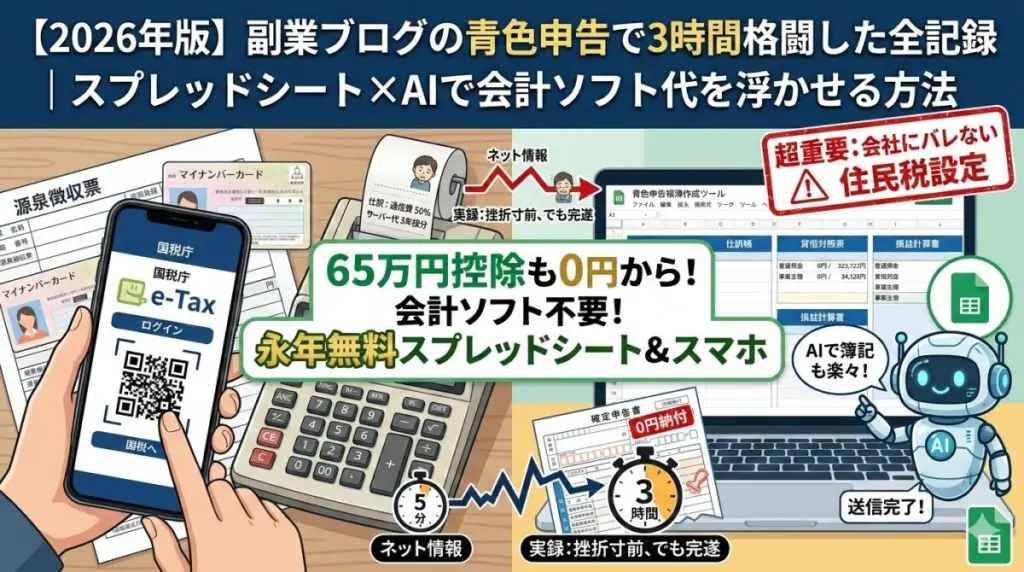 ブログを副業として書き始めてはじめて2025年に年間20万円を超えたので節税のために個人事業主になって確定申告をやりました。